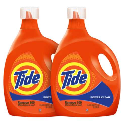타이드Tide 파워클린 세탁세제 3.7L x 2 수백만 개의 딥클리닝 분자로 차가운 물에서도 표면 뿐 아니라 섬유 깊은 곳까지 딥 클리닝 세제 잔여물 걱정 없는 깔끔한 세정력