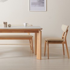 데코라인 수림 4인용 원목 세라믹 식탁 세트, 단면, 테이블+의자2+벤치1